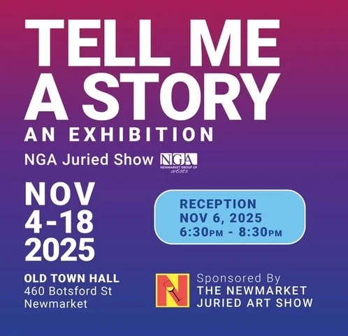 I currently have two paintings, and a charcoal drawing, in the group shows: “Tell Me a Story” and “Chasing the Light.” Both feature a variety of wonderful work in a variety of media by members of the Newmarket Group of Artists. More information below.